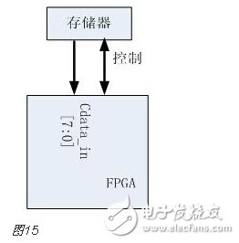 主串模式是最簡(jiǎn)單的固化模式,如圖14所示,這個(gè)模式過(guò)程不需要為外部存儲(chǔ)器提供一系列地址。它利用簡(jiǎn)單的脈沖信號(hào)來(lái)表明數(shù)據(jù)讀取的開始,接著由FPGA提供給存儲(chǔ)器時(shí)鐘,存儲(chǔ)器在時(shí)鐘驅(qū)動(dòng)下,將數(shù)據(jù)輸入到FPGA Cdata_in端口。