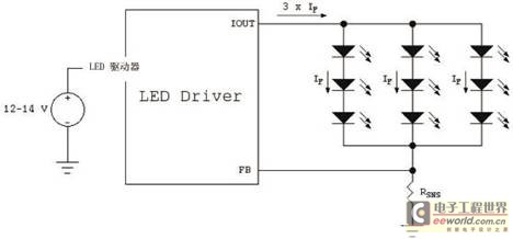 在并聯(lián)燈組陣列中,配置LED通過(guò)允許LED功率級(jí)在12V~14V軌道下直接運(yùn)行,極大地簡(jiǎn)化系統(tǒng)設(shè)計(jì),但并聯(lián)/串聯(lián)組合也同樣具有一些缺點(diǎn)。在查看LED制造商數(shù)據(jù)表時(shí),可以注意到兩個(gè)重要的事實(shí):LED的光輸出與流經(jīng)的電流成正比,LED的動(dòng)態(tài)電阻隨著VF而變化。制造商按VF、光通量和顏色(或色溫)對(duì)LED分級(jí)。例如,典型的VF級(jí)別可能包含范圍從3.27V到3.51V(25℃時(shí))的LED,所有級(jí)別的整個(gè)范圍可以從2.8V到4.2V。由于LED制造商通常向客戶銷(xiāo)售多個(gè)級(jí)別的LED,關(guān)注成本的設(shè)計(jì)師依賴(lài)所有LED都具有緊密VF分布是不實(shí)際的。