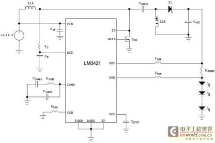 圖6SEPIC配置中的LM3421