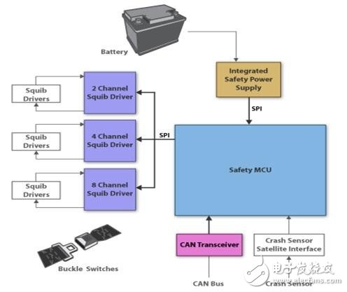 由MCU通過SPI控制爆管驅(qū)動器(2通道、4通道、8通道)