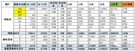 3212 ,如銷量增速成功回正的上汽大眾,終于在11月首次突破月銷20萬輛;再如寶馬、奔馳、奧迪以及沃爾沃均在中國市場取得歷年最好成績等等。但同時,新能源汽車普遍下滑的態(tài)勢也不容忽視,比亞迪新能源、北汽新能源以及江淮新能源均持續(xù)下滑。具體情況如下: