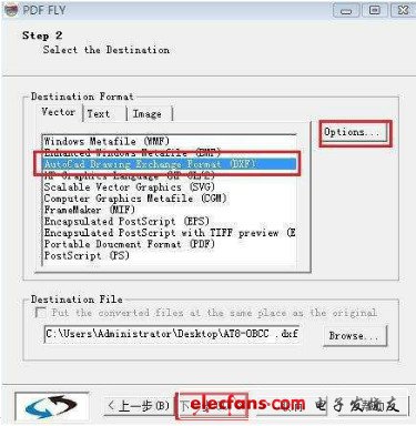 2、選擇DXF格式,然后在右邊的option里面還可以進(jìn)行相關(guān)的設(shè)置