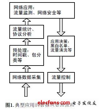 鏈路帶寬的劇增給高速網(wǎng)絡(luò)數(shù)據(jù)包處理帶來(lái)了極大的挑戰(zhàn)。傳統(tǒng)的純軟件網(wǎng)絡(luò)數(shù)據(jù)包處理在性能上已不能滿足需要。當(dāng)前網(wǎng)絡(luò)處理器、多核芯片等針對(duì)高性能網(wǎng)絡(luò)數(shù)據(jù)包處理提供了件加速技術(shù),對(duì)多數(shù)網(wǎng)絡(luò)應(yīng)用提供了高性能實(shí)現(xiàn)方法。在對(duì)數(shù)據(jù)處理時(shí)延、吞吐量、丟包率等性能指標(biāo)有更高要求的應(yīng)用場(chǎng)合,還需要專用的加速硬件。本文針對(duì)基于深度報(bào)文檢測(cè)(DPI)的高性能流量分析和控制應(yīng)用需求,介紹基于現(xiàn)場(chǎng)可編程邏輯門陣列(FPGA)的通用高速網(wǎng)絡(luò)數(shù)據(jù)包處理硬件加速架構(gòu)。該架構(gòu)對(duì)數(shù)據(jù)采集通路進(jìn)行硬件加速,實(shí)現(xiàn)了高速鏈路數(shù)據(jù)報(bào)文的線速采集,通過(guò)專用硬件進(jìn)行數(shù)據(jù)包轉(zhuǎn)發(fā)和流量控制,針對(duì)后端多核服務(wù)器的并行處理進(jìn)行優(yōu)化,實(shí)現(xiàn)了控制和分析平面的高性能處理。本文介紹該架構(gòu)在流量采集、高精度時(shí)鐘同步、高速包分類和流量控制等方面的硬件加速方法。測(cè)試結(jié)果表明,這些加速方法充分卸載了服務(wù)器的處理負(fù)荷,能有效地提高應(yīng)用系統(tǒng)的性能。