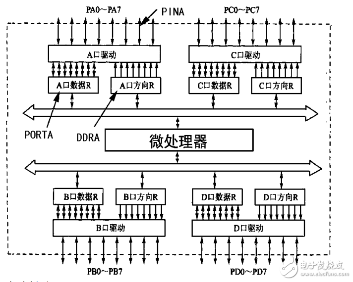 編寫程序中必須先說明I/O口的狀態(tài):如圖所示每個(gè)口有三個(gè)口地址。