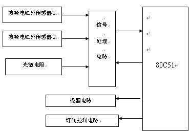 1) 傳感器及信號處理部分:檢測人體輻射紅外信號及光強信號經過處理后變成可處理的數字信號