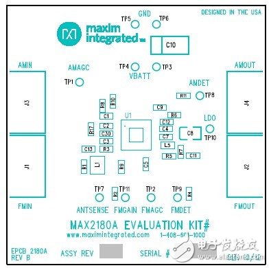 The MAX2180A evaluation kit (EV kit) simplifies evaluationof the MAX2180A AM/FM low-noise amplifier. The EVkit enables test of the device features and performanceand requires no additional support circuitry or software.The signal input and output use SMA connectors tofacilitate connection of RF test equipment.