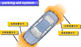 停車輔助系統(tǒng):駐車距離報(bào)警系統(tǒng)協(xié)助駕駛員駐車或調(diào)整車位。如果汽車后部接近障礙物,系統(tǒng)將發(fā)出斷續(xù)的聲響警報(bào)聲。汽車后部與障礙物越近,警報(bào)聲越短促。若車后部與障礙物極其接近,系統(tǒng)將持續(xù)發(fā)出警報(bào)聲;若汽車后部繼續(xù)接近障礙物,則系統(tǒng)將不再能探測到車障礙物。駐車距離報(bào)警系統(tǒng)借助后保險(xiǎn)杠上四個(gè)超聲波傳感器測算汽車與障礙物的距離。傳感器發(fā)送和接收超聲波。電子系統(tǒng)利用發(fā)送和接收到的超聲波計(jì)算汽車與障礙物的距離。開啟駐車距離報(bào)警系統(tǒng)打開點(diǎn)火開關(guān)后,掛入倒車檔,駐車距離報(bào)警系統(tǒng)即開啟。此時(shí)能夠聽到聲響信號。如果沒有聲響信號,則表明報(bào)警系統(tǒng)未開啟.關(guān)閉駐車距離報(bào)警系統(tǒng)一旦換檔移出倒車檔,駐車距離報(bào)警系統(tǒng)即被關(guān)閉。