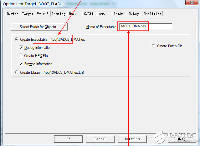a) 打開或新建一個與芯片型號對應(yīng)的工程,在工程設(shè)置中配置output選項,