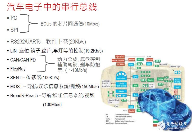 ? ? ?今天的汽車應(yīng)用對總線的需求越來越苛刻,要減少總線負(fù)載,增加吞吐速率,與采用象FlexRay這樣的同步串行總線相比,從CAN 2.0 技術(shù)過渡到CAN FD是比較容易的,基本上是無縫過渡。
