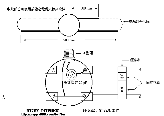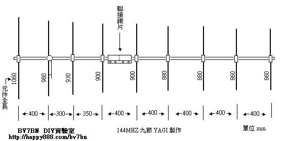 的技術(shù)才會(huì)提昇, 這也是業(yè)余無線電玩家的精神. 只要你完成了前一個(gè)單元的實(shí)驗(yàn)144MHz 九節(jié)八木天線, 那你要制作一個(gè)雙排定向天線, 絕不是一件難事. 只要你有了分配器, 想要做幾排定向天線都沒