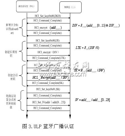 如圖3所示,在SEC=1的條件下,ULP藍(lán)牙廣播模式下的認(rèn)證步驟如下: