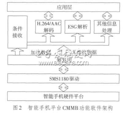 7999 諾的SMS1180解決方案,在智能手機平臺上實現(xiàn)了CMMB手機電視功能。 1 系統(tǒng)結(jié)構(gòu) 智能手機平臺采用基帶處理器+應(yīng)用處理器的雙處理器結(jié)構(gòu),主要由無線通信模塊、多媒體處理模塊、視音頻輸出模塊