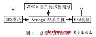 為使汽車發(fā)生車禍時(shí)可在最短的時(shí)間內(nèi)得到援救,以達(dá)到減少車禍傷亡的目的,設(shè)計(jì)了一種基于加速度的車禍報(bào)警系統(tǒng),主要包括車載終端和上位機(jī)。車載終端以AVR單片機(jī)作為核心,它