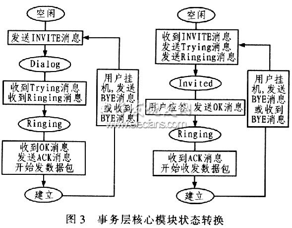 6 ,各網(wǎng)關(guān)之間需要使用SIP協(xié)議完成傳統(tǒng)語(yǔ)音通信中需要的信令傳遞。針對(duì)VOIP技術(shù)中對(duì)SIP協(xié)議應(yīng)用的需求,文中研究了SIP協(xié)議的框架和編程實(shí)現(xiàn)方案。通過(guò)搭建基于SIP協(xié)議的VOIP通信系統(tǒng),并重點(diǎn)實(shí)現(xiàn)使用SIP協(xié)議進(jìn)行用戶代理的建立和斷開(kāi)功能,從而介紹了在VOIP通信系統(tǒng)中