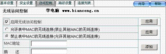 訪問(wèn)控制是通過(guò)MAC地址進(jìn)行管理,有允許和禁止相向來(lái)管理,就好比MAC地址綁定管理一樣。