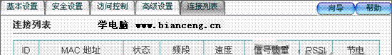 連接列表中可看到無(wú)線連接的數(shù)量,分別有MAC地址、狀態(tài)、頻段、速度等。