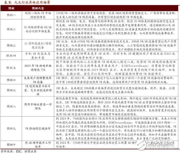 4G僅能夠滿足部分VR/AR應(yīng)用,因此5G時(shí)代的到來將拓展出全新的應(yīng)用場景。2月11日,IDC發(fā)布2019年VR/AR市場十大預(yù)測。IDC認(rèn)為,目前行業(yè)應(yīng)用正在進(jìn)一步展開和深入,細(xì)分領(lǐng)域消費(fèi)場景不斷得到豐富,VR終端市場逐漸向擁有更佳體驗(yàn)的中高端產(chǎn)品形態(tài)過渡,產(chǎn)業(yè)生態(tài)發(fā)展更加成熟。未來,技術(shù)革新與應(yīng)用將會(huì)成為VR/AR市場在2019年的重要發(fā)展趨勢,新技術(shù)的成熟和普及將為市場的持續(xù)增長賦能。內(nèi)容生態(tài)依然是行業(yè)整體進(jìn)步的關(guān)鍵,未來將會(huì)有更多的產(chǎn)業(yè)領(lǐng)域向VR/AR技術(shù)設(shè)備提供商以及內(nèi)容制作商伸出橄欖枝。IDC預(yù)測,至2023年,商用領(lǐng)域的應(yīng)用場景中,支出規(guī)模最大的依次為培訓(xùn)(27.5億美元)、零售展示(21.4億美元)和工業(yè)維修(16.2億美元)。而在消費(fèi)領(lǐng)域,3個(gè)應(yīng)用場景(VR游戲、AR游戲、VR視頻)的支出規(guī)模預(yù)期將于2023年達(dá)到95.9億美元。在預(yù)測期內(nèi)(2018-2023年),有14個(gè)應(yīng)用場景的5年CAGR將超過100%,其中增長最快的為AR游戲、解剖學(xué)診斷以及虛擬測試驅(qū)動(dòng)。