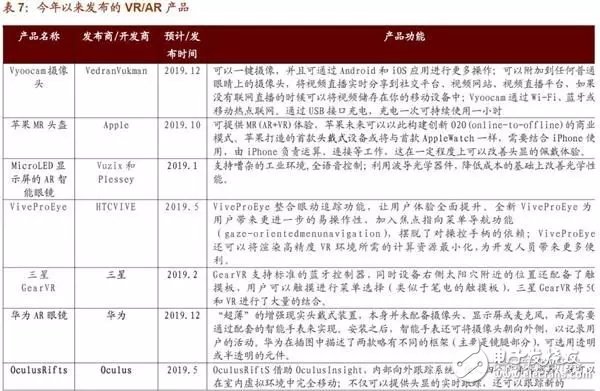去年以來,包括微軟、蘋果、谷歌等巨頭爭相加碼VR/AR市場,19年進(jìn)入新品發(fā)布期。資料顯示,全年國內(nèi)外廠商預(yù)計(jì)發(fā)布10余款A(yù)R新品,三星、華為均透露在19年年內(nèi)發(fā)布VR產(chǎn)品,且新品性能大幅提升。
