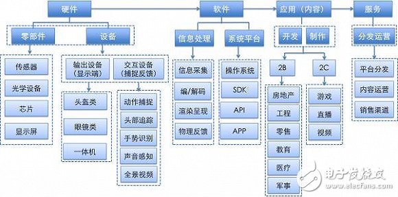 VR 產(chǎn)業(yè)鏈較長,參與廠商眾多,涵蓋硬件、系統(tǒng)、平臺(tái)、開發(fā)工具、內(nèi)容以及內(nèi)容運(yùn)營銷售等。作為一個(gè)尚處于萌芽期的產(chǎn)業(yè),其每個(gè)環(huán)節(jié)都存在較多的競爭者以及潛在進(jìn)入者。國內(nèi)廠商大多集中在產(chǎn)業(yè)鏈前半部分,尤其在硬件領(lǐng)域較為集中,而在內(nèi)容、開發(fā)平臺(tái)、軟件及周邊產(chǎn)業(yè)等領(lǐng)域基本處于空白。