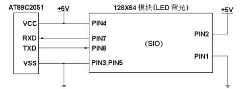 ?????? 圖4 單片機(jī)AT89C2051與模塊128X64的聯(lián)接