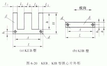 KEB 、KIB型鐵心片外形如圖6-20 所示,其規(guī)格見表6-28 。