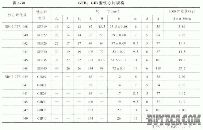 GEB 、GIB 鐵心片的外形如圖6-22 所示.其規(guī)格見表6-30 。