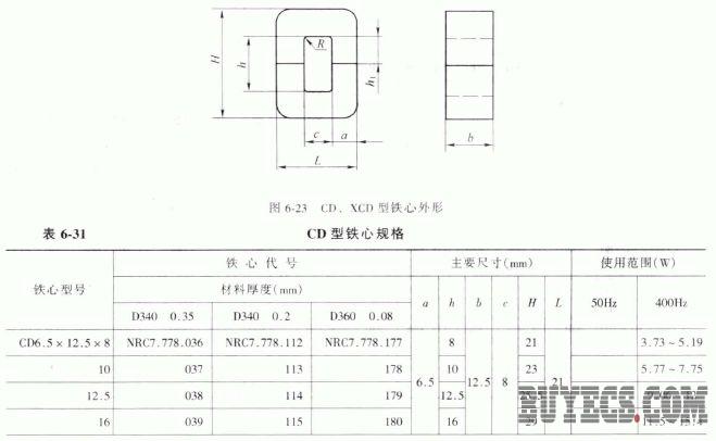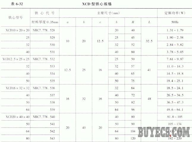CD 型、XCD 型鐵心的外形如圖6-23 所示.其規(guī)格見表6-31 和表6-32 。