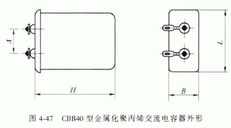 CBB40 型金屬化聚丙烯交流電容器為金屬外殼全密封結(jié)構(gòu),具有自愈特性好、電性能優(yōu)良、損耗小、交流特性好及穩(wěn)定性高等特點(diǎn),適用于400Hz 交流電路。其外形如圖4-47 所示,主要特性參數(shù)見表4-76 。