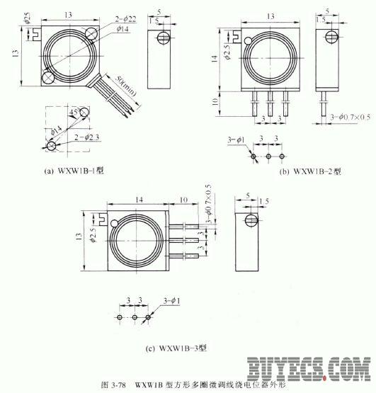 WXWI-1A 、WXW-2/3/4 型矩形多圈微調(diào)線繞電位器外形如圖3-81 所示,它們的主要參數(shù)見(jiàn)表3-55 。