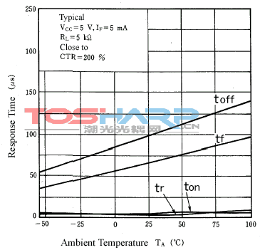 LED發(fā)光效率有一個負(fù)溫度系數(shù),反之晶體管的hFE有一個正溫度系數(shù)。因此,取決于溫度的CTR是這兩個參數(shù)的組合。