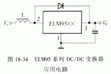 ELM95 系列DC/DC 變換器應(yīng)用電路如圖18-34 所示。電路中的外圍元件極少,僅有電感器、二極管和電容器。應(yīng)用中應(yīng)注意選擇的電感線圈內(nèi)阻要小且不能出現(xiàn)磁飽和,二極管要選用開(kāi)關(guān)速度快的,電容器的耐壓至少是輸出電壓的3 倍以上。