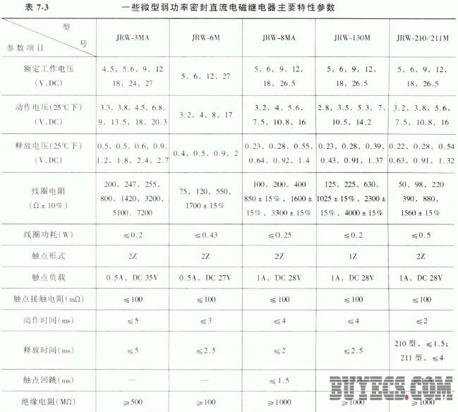 表7-2 和表7-3 列出了一些微型電磁繼電器的特點、用途及主要特性參數(shù)。圖7-6 為它們的外形及電路。