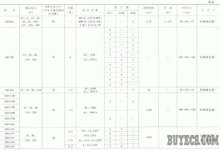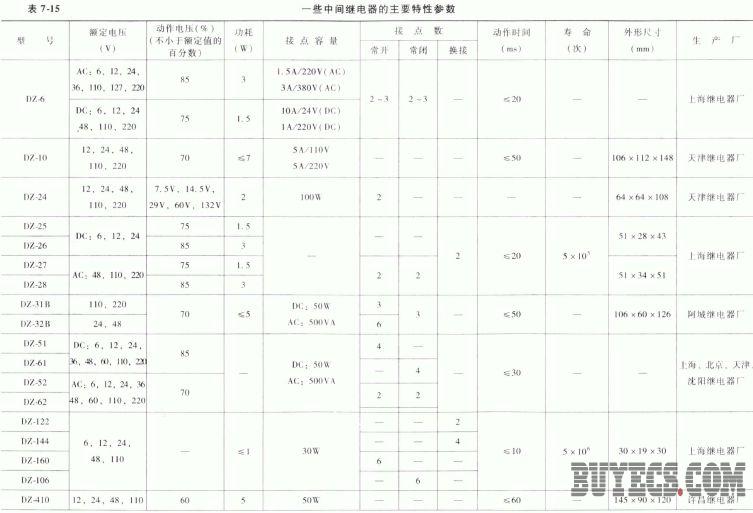 表7-15 列出了一些中間繼電器的主要特性參數(shù)。