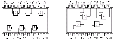 TTL器件的典型產(chǎn)品為54系列(軍用品)和74系列(民用品)兩大類。下面給出部分常用器件管腳排列和功能說明。