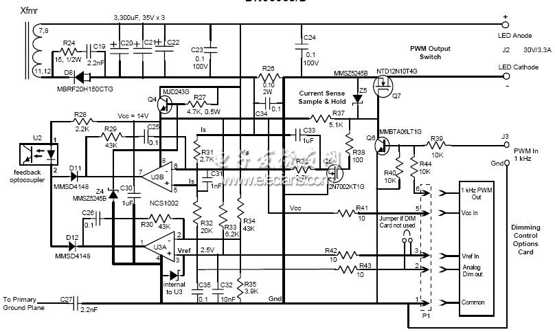 NCS1002是一款次級端恒壓恒流(CVCC)控制器,適合LED街燈等區(qū)域照明應(yīng)用,配合NCL30001控制器更可以設(shè)計(jì)出高功效、具有調(diào)光功能的LED驅(qū)動器演示板。