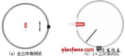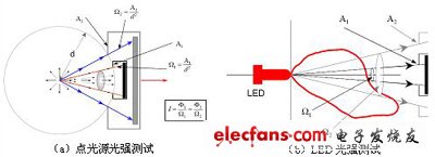 光通量的測(cè)試有兩種方法,即積分球法和變角光度計(jì)法。變角光度計(jì)法是測(cè)試光通量最精確的方法,但是由于其耗時(shí)較長(zhǎng),所以一般采用積分球法測(cè)試光通量?,F(xiàn)有的積分球法測(cè)LED光通量中有兩種測(cè)試結(jié)構(gòu),一種是將被測(cè)LED放置在球心,另外一種是將其放在球壁。