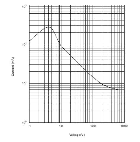 指熱敏電阻器在施加電壓過程中,電流隨時(shí)間的變化特性。開始加電壓瞬間的電流稱為起始電流,平衡時(shí)的電流稱為殘余電流(如下圖所示)。