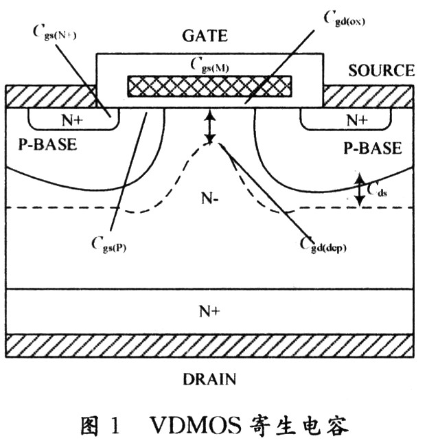 Cgs(N+)是柵源交疊電容;Cgs(M)是柵與源金屬間的電容;Cgs(P)是柵與P-base之間的電容。這三個(gè)電容的大小都是由VDMOS本身設(shè)計(jì)上的參數(shù)決定的,最主要取決于介質(zhì)層的厚度。