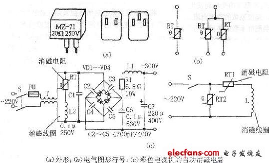 彩色電視機用的消磁電阻損壞更換時,一定要選用與原來額定電壓、標(biāo)稱阻值相同的MZ型正溫度系數(shù)的熱敏電阻。因不同屏幕尺寸的電視機其消磁線圈結(jié)構(gòu)(感抗)與消磁電阻(阻值)也不同,消磁電阻的阻值和原來的相差太大,對消磁效果有影響。若找不到與原來阻值、耐壓值相同的電阻,可選用和原來額定電壓相等或稍高、阻值稍大一些的消磁電阻。