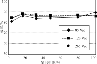 測(cè)試表明,對(duì)于帶有源功率因數(shù)校正(PFC)電路的60W單級(jí)單開(kāi)關(guān)AC/DC轉(zhuǎn)換器,在85~265V整個(gè)工頻電壓范圍內(nèi),新的數(shù)字化控制器在各種負(fù)載條件下的效率高達(dá)80%至89%。如圖1所示。此數(shù)字化控制器具有無(wú)需光耦器件;只用初級(jí)反饋進(jìn)行控制而無(wú)需反饋電路補(bǔ)償;以及能適應(yīng)任何拓?fù)浣Y(jié)構(gòu)的電源等優(yōu)點(diǎn)。